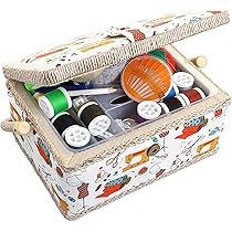 Amazon Com Sewing Box With Accessories Sewing Storage Organizer With Complete Hand Sewing Kit Tools Wooden Sewing Basket With Removable Tray And Tomato Pincushion For Sewing Mending White